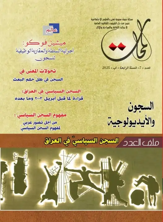 الإيديو لوجي الحزبي ( النموذج الشيوعي والإسلامي) وعدم الإنصياع وعدم للنظام السياسي آنذاك . ) وجاء في باب دراسات المجلة / -- السجن السياسي في العراق قراءة لما قبل أبريل ٢٠٠٣ وما بعده : د . علي جودة وتوت / السجن السياسي في العراق دراسة تحليلية : د . علي السعيديّ / السجن السياسي في العراق مائة عام من القهر والقمع والإنتهاك : د . محمد حمود السهر / تحولات المعنى في السجن في ظل حكم البعث : حكمت صاحب البخاتي / السجن السياسي في الرِّوايةِ العراقية : عبد العزيز فزاع / سجناء اليمين وسجناء اليسار -- قراءة في سيرتي سجينَينِ سياسيَّينِ : عامر موسى الشيخ / النظريات الإجتماعية المفسرة للسجن -- محاولة للتعقّب والفهم : أحمد قاسم مفتن / تعويض ضد الحكومة -- السجون والسجناء في العراق الهاشمي خلال الحرب الباردة : همسة فراس / خطاب السجون السياسية في العالم -- خطاب سجن النساء : دينا عبيد -- الهام مكي . وجاء في باب مفهوم / مفهوم السجن السياسي من أجل تصور عربي لمفهوم السجن السياسي : د . عقيل حبيب / وفي باب عالم نقرأ / ميشيل فوكو : إجرائية السلطة و المقاربة الوظيفية للسجون : حيدر ناظم محمد / وفي باب كتاب / السجن فكرة وإفتراض في الإنتماء إلى العدالة قراءة في كتاب ( السجنُ مجتمعٌ بريٌّ / ونقرأ في باب مقالات المجلة / توتاليتارية البعث والأدب العراقي -- دراسة في القمع والذاكرة : حسن أكرم / السجن السياسي التعريف و الإشكالية التاريخية : حسن جوان / رسائل جدران السجون لمحات ووثائق : د . ميثم حربيّ / السجون السياسية في العراق-- حين تُسجنُ الأفكارُ وتُقمعُ الأرواح : أحمد حسن / نمط الذاكرة الثقافية للسجين السياسي.