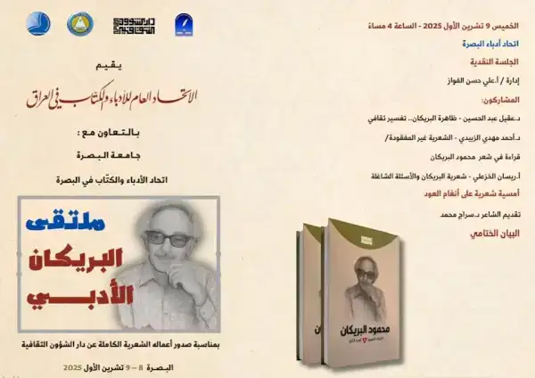 في البصرة وملتقى البريكان الأدبي ، بالتعاون مع جامعة البصرة واتحاد ادباء البصرة بمناسبة صدور أعماله الشعرية من دار الشؤون الثقافية